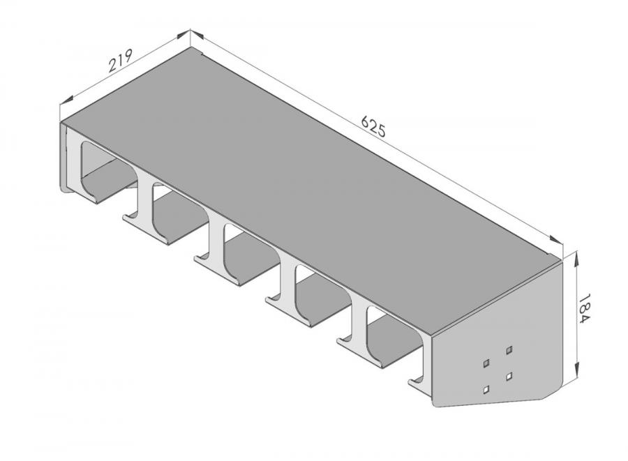 Méretek: 21,9 cm x 62,5 cm x 18,4 cm, 1,5 mm vastagságú acélból készült, és 5 kg a súlya.