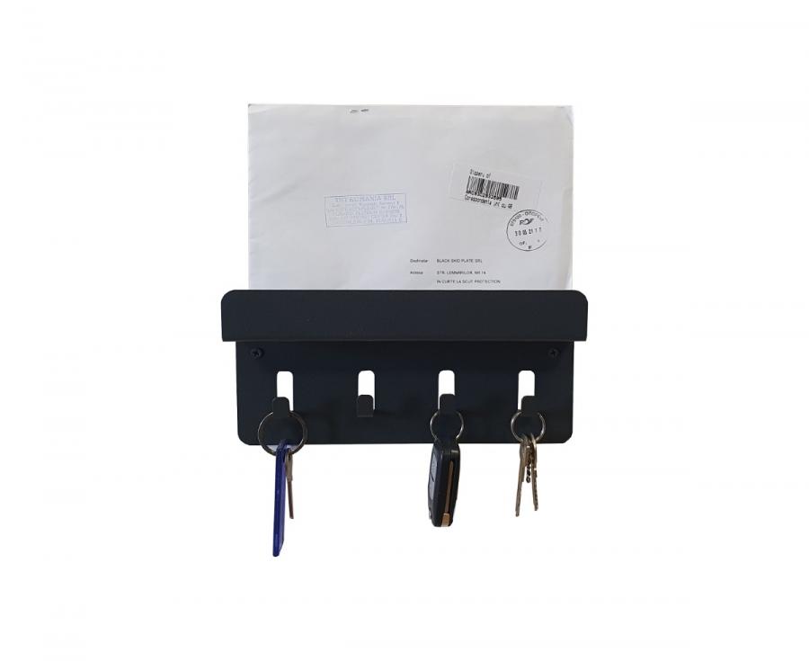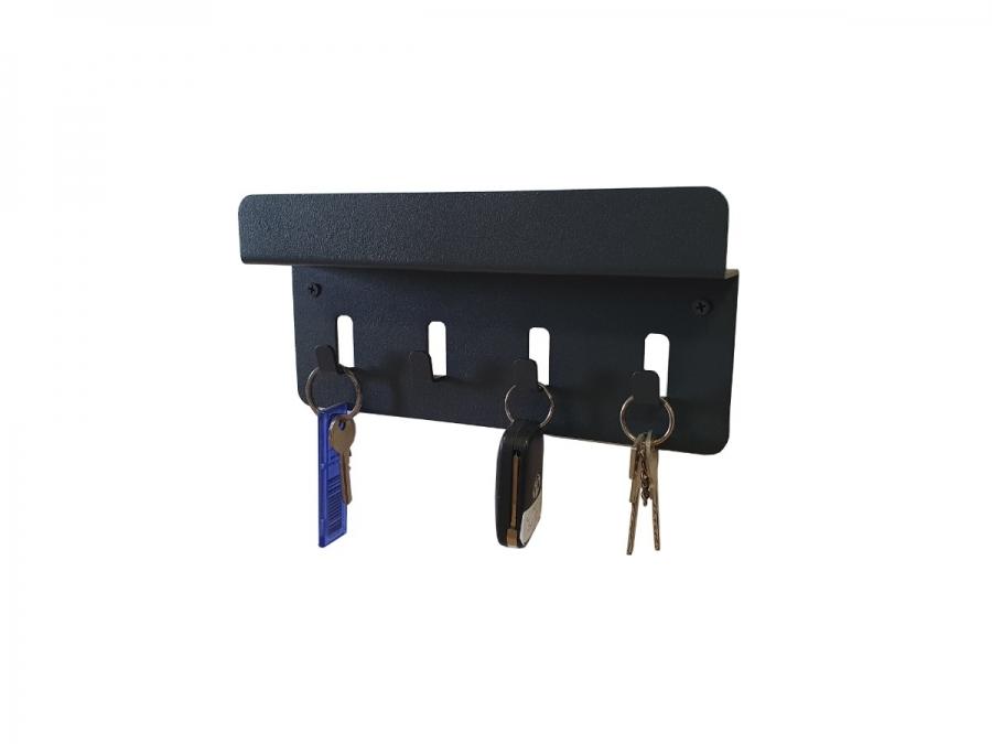 Kulcstartó 4 akasztós polccal 25x12 cm, Antracit