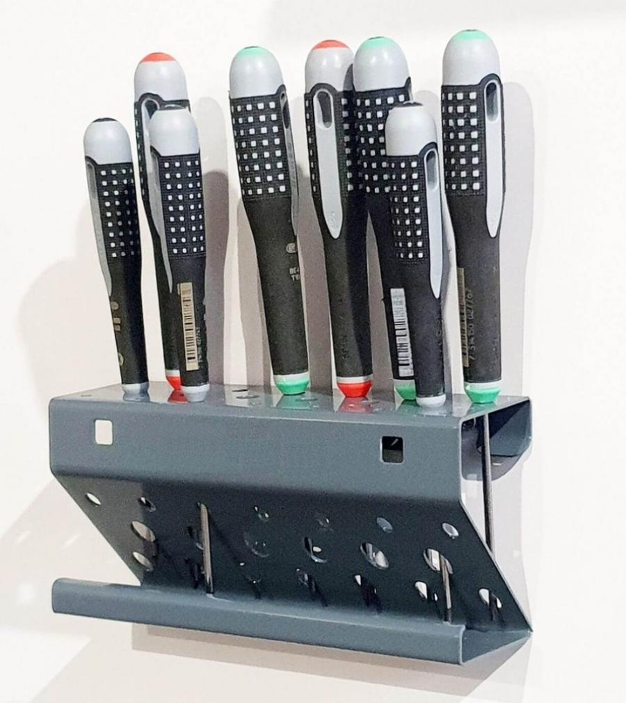 Ez a praktikus és strapabíró fém rendszerező ideális megoldás műhelyek, garázsok vagy hobbihelyiségek falára a szerszámok átlátható tárolásához. Segítségével megszüntethető a rendetlenség a munkapadon, és a csavarhúzók mindig kéznél lesznek.