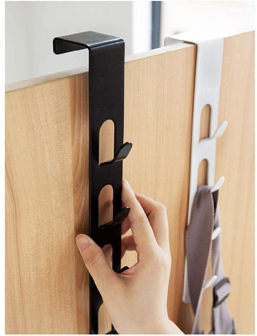 Ajtóra akasztható törülköző tartó 4 akasztóval, fekete