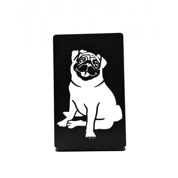Mops kutya mintázatú könyvtámasz, 180x110 mm, fém, matt fekete